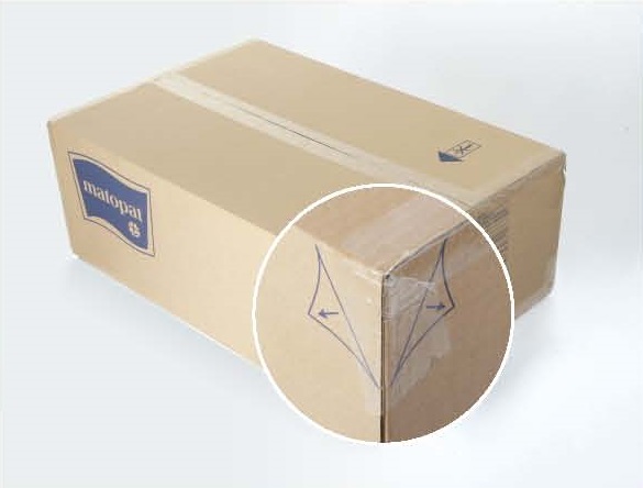Pictograma speciala din coltul cutiei de transport indica locul unde trebuie desfacut cartonul.
