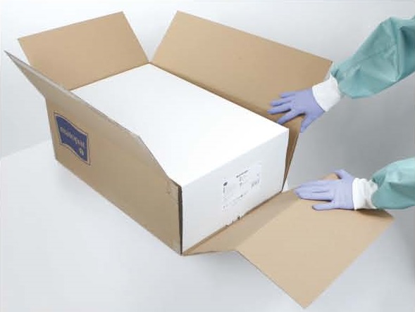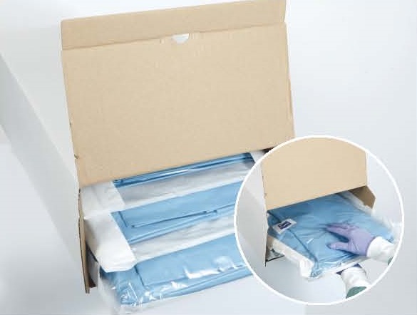 Dispenserul poate fi asezat pe un raft intr-un spatiu de depozitare si reprezinta o protectie suplimentara impotriva murdariei exterioare, pana la utilizarea produselor in blocul operator.