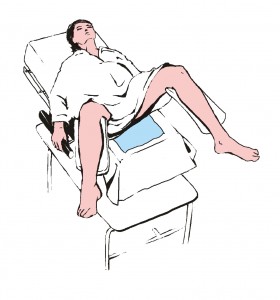 Se foloseste campul din set pentru acoperirea picioarelor pacientei, garantand astfel sterilitatea campului operator.