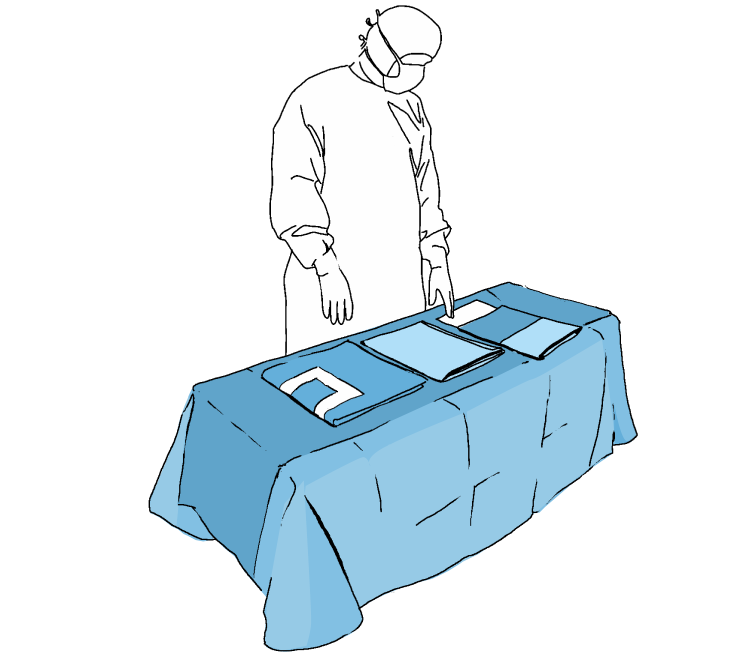 nainte de a acoperi pacientul (delimitand campul operator), acordati atentie pictogramelor care indica directia in care se va desface campul.