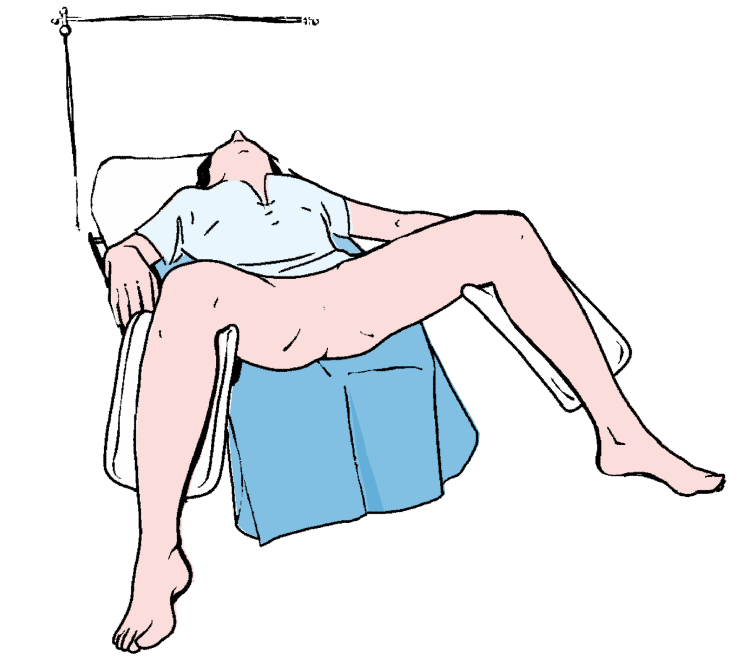 Asezati campul mai mic sub fesele pacientului, aflat in pozitie ginecologica.