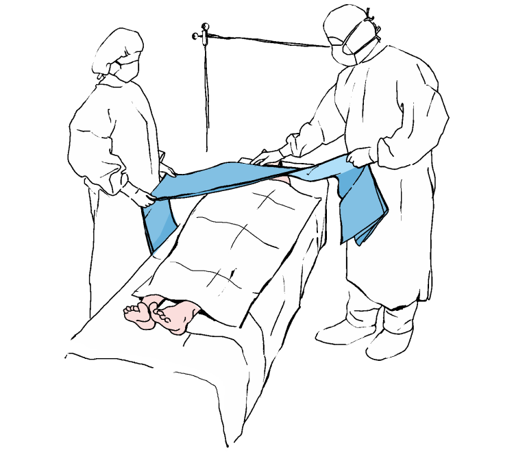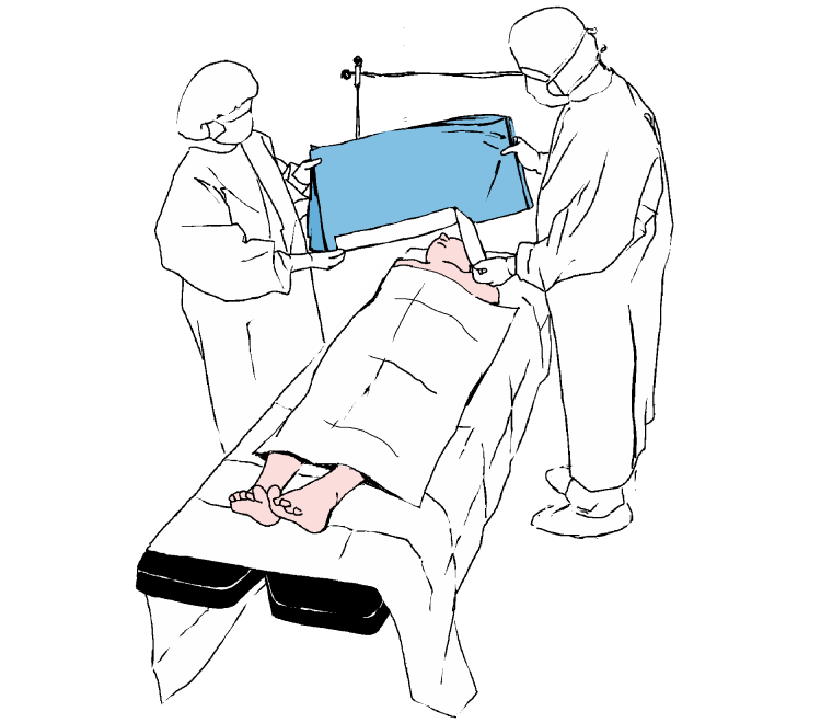 Desfaceti partea inferioara a campului peste picioarele pacientului.