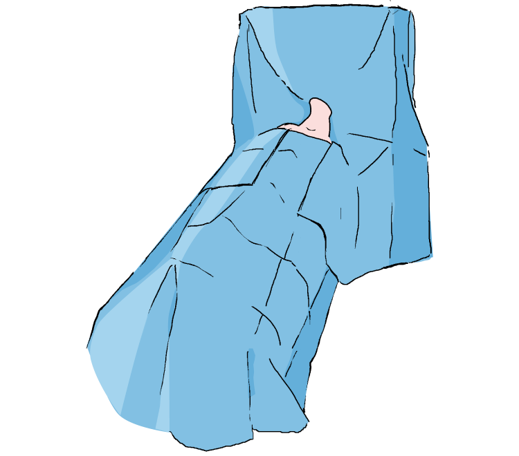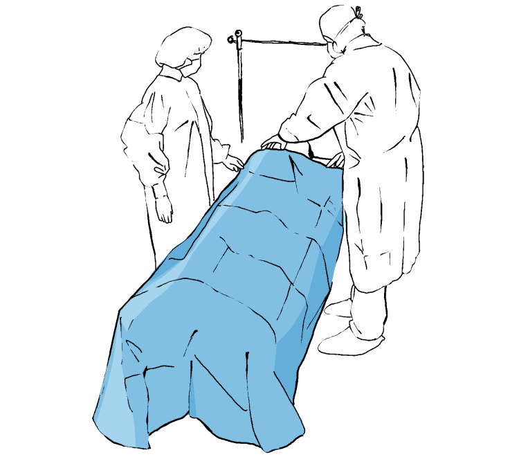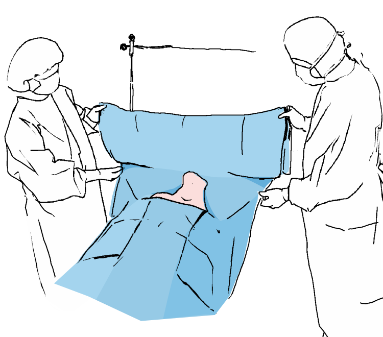 Desfaceti campul in ambele parti si lipiti-l in partea de sus a pieptului pentru a delimita marginea inferioara a campului de operare.