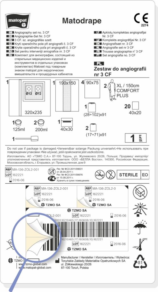 • EAN28 code, which includes: product EAN code, LOT number and expiration date – which allows keeping electronic records of the products used in hospital.